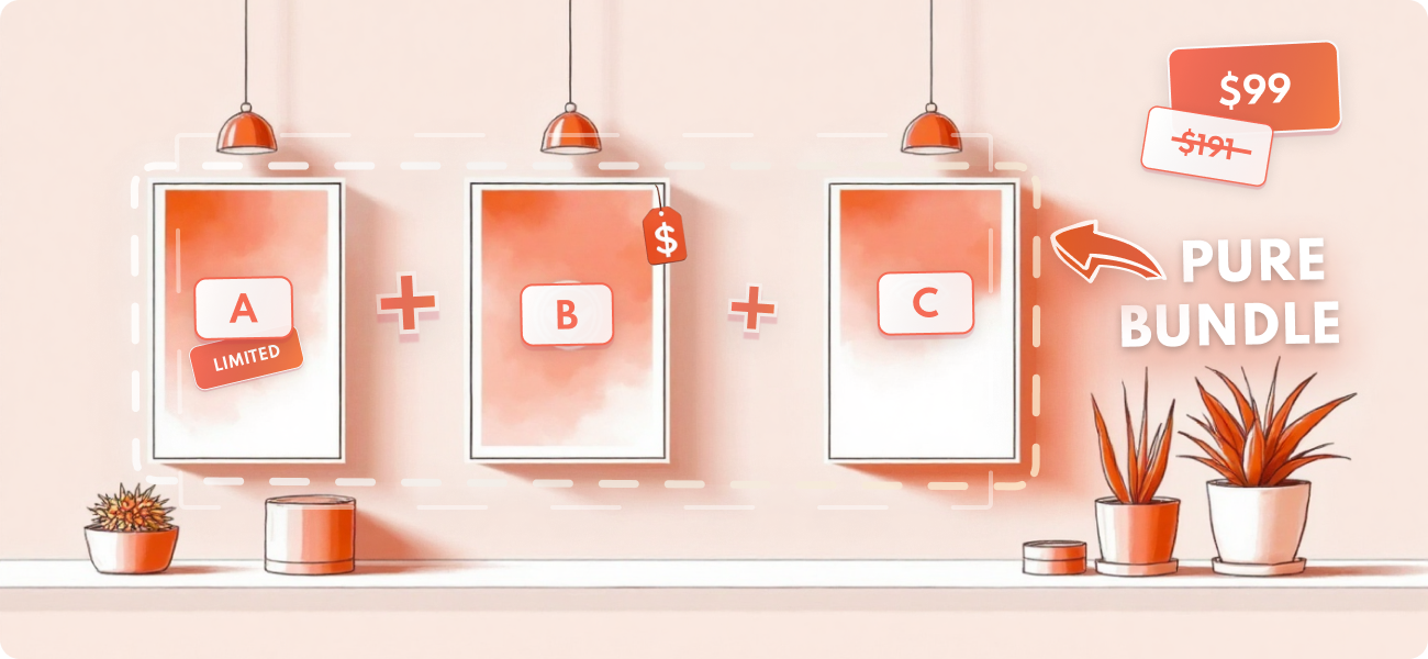 Pure bundles create scarcity and exclusivity. They are ideal for holiday marketing and pre-made gift sets.