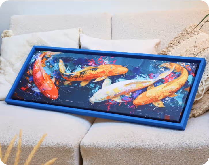 No. Our gallery canvases are designed to be displayed without additional framing. They feature a thicker inner frame, which adds a distinct presence to the artwork. We offer decorative frames only for our standard canvases due to the thickness and framing specifics of the gallery canvases.